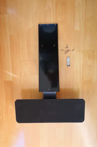 Escritorio de madera con acabado en negro y soporte extra para mas espacio. En la foto se muestra montado pero se entrega desmontado y con todas las piezas y tornillos. Escritorio de amazon con referencia: Buyqualia Mesa Ordenador Escritorio de Oficina con Base para pc en negro