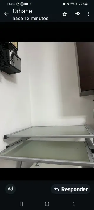 Escritorio de cristal con estructura de metal. Muy robusto y resistente, apto para PC. Imprescindible venir al domicilio a por él.