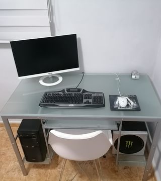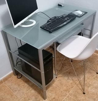 Mesa de ordenador cristal y metal