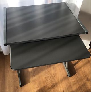 Mesa de escritorio compacta, ideal para tu ordenador. Cuenta con una bandeja extraíble para el teclado y espacio de almacenamiento. - Compartimentos de almacenamiento. - Ruedas para fácil movilidad. - Mesa escritorio en excelente estado,como nueva. Alumbrado,Armario,Bombilla,Cama,Canapé,Candelero,Decoración,Decorativo,Dormitorio,Económico,Flexo,Glamour,Hogar,Iluminación,Lámpara,Mesa,Mesita,Mueble,Muebles,Navidad,Nueva,,Nuevo,Oferta,Original,Portáble,Retro,Vintage