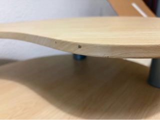 Tablero Malskytt con dos patas y soporte para ordenador. - Tablero de madera. - Patas de metal blancas Tenemos otro tablero con las mismas medidas sin patas que también está en venta. El protector blanco para niños de la foto se quitará sin problemas y sin dejar marca