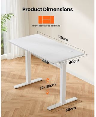 Escritorio elevable con superficie de 60x120 cm. Altura regulable: Se puede regular la altura entre 70-119 cm - Estructura metálica. - Tablero de madera. Organizador de cables: Puedes ordenar tus cables bajo el tablero Anticolisión: Previene las colisiones con objetos que pueda tener alrededor Patas regulables: Asegurando así un escritorio estable y nivelado Chapa artificial y acero: Materiales robustos y duraderos