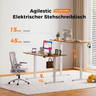 ¡Síguenos en nuestro IG @elemercadocircular para ver todos los productos que nos van llegando! ¡Para estrenar! Escritorio Agilestic elevable + L ergonómico. Si se compra con envío debe ser a domicilio. - *Motor eléctrico 72-116cm*: Silencioso (<55dB) + 2 memorias. - *Diseño L + FSC*: Amplio + madera certificada + esquinas. - *Sólido + duradero*: Acero + 80kg + 50k pruebas. - *2 cajones tela*: Guarda + orden + limpio. - *Práctico diario*: Ganchos + gestión cables + anticolisión 2,5cm. D0123