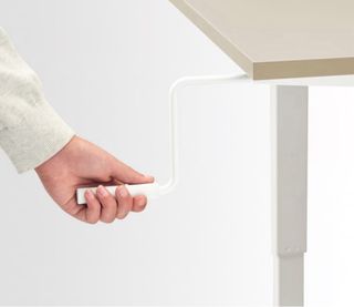 Escritorio elevable de Ikea modelo Trotten, con unas dimensiones de 160x80 cm. Especialmente concebida para trabajos manuales: recortables, costura, cerámica o estudio - Superficie de color blanco. - Patas de metal en color blanco. - Mecanismo de elevación para ajustar la altura manual con manivela. Tiene señales y marcas de uso pero afectan a su funcionalidad