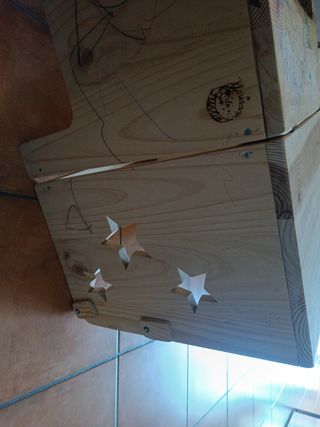 Escritorio de madera Montessori hecho por encargo por carpintero. Tiene rallajos del uso, pero la estructura está en perfectísimo estado. Se convierte en elevador para aprendizaje. Tiene barras de protección anti caídas. Madera de calidad