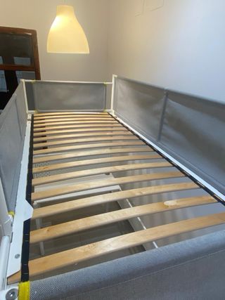 Estructura de cama elevada con un espacio de trabajo integrado debajo. Incluye una barrera de seguridad para la parte superior. - Estructura de metal. - Barrera de tela. - Panel frontal con perforaciones. -Incluye colchón -En muy buenas condiciones como se ve en las fotos. -cajonera incluida no me deja adjuntar la referencia a ikea pero si estas interesad@, no dudes en escribirme y te la mando.