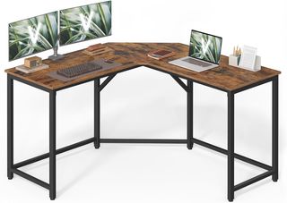 Escritorio Esquinero, Escritorio para Computadora en Forma de L, 149 X 149 X 76 Cm, para Oficina Estudio Gaming, Marrón Vintage y Negro Tinta LWD73X