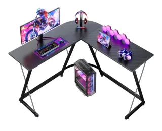 Escritorio en forma de L con superficie texturizada. - Amplia superficie de 120 x 120 cm. - Estructura metálica robusta. - Diseño moderno en forma de L. ODK Escritorio Gaming, 120 x 120 cm Mesa Gaming, Escritorio esquinero estable y económico para juegos, oficina en casa y estudio, fibra de carbono negra. Tengo 2 unidades disponibles, el precio es por unidad.