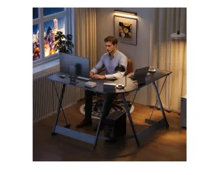 Escritorio esquinero con un diseño moderno, ideal para tu setup gamer. Su superficie amplia te permite organizar todo tu equipo. - Estructura robusta de metal. - Acabado en negro con detalles. - Superficie de plástico resistente.