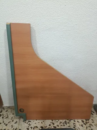 Este escritorio esquinero ofrece un diseño funcional y elegante para tu espacio de trabajo. Su forma se adapta a las esquinas, optimizando el aprovechamiento del lugar. - Amplia superficie de trabajo. - Cajonera integrada para almacenamiento. - Acabado en madera. - Detalles metálicos Van las dos cajoneras por un lado y la mesa por el otro apoyada. 120€ con la cajonera grande del juego