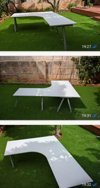 Mobiliario a la venta: - Sofá Chaise longue gris: 126€ - Mesa escritorio esquinera blanca (entrada derecha): 82€ - Mesa escritorio blanca (entrada derecha fondo): 82€ - Mesa escritorio blanca (Fondo izquierda): 82€ - Silla escritorio blanca: 17€ - Mini cajonera blanca 4c: 28€ - Carrito/Camarera blanco con ruedas: 44€ - Carrito 3 cestos blanco: 11€ Estantería restaurada: 11€ - Cajonera metal blanca con cerradura: 28€ - Cajonera blanca 3c con asas: 17€ - Librería Kallax: 88€ - Cuadro: 9€