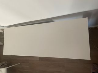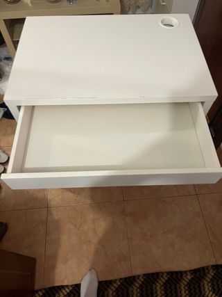 Escritorio malm de ikea en color blanco. - Amplia superficie de trabajo. - Cajonera integrada para almacenamiento. - Balda en el interior de la puerta. Tiene un pequeño golpe en una esquina del tablero, se ve en la ultima foto.