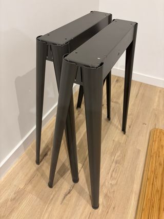 Par de caballetes para escritorio de la serie NÄRSPEL de IKEA. Su diseño moderno y minimalista se adapta a cualquier espacio. - Estructura de metal resistente. - Color gris oscuro. Recogida en Carrer de Bartomeu Pi 15, Sants