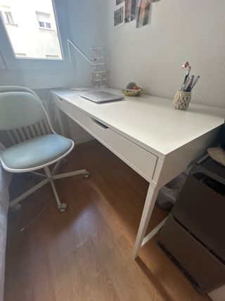 Escritorio Blanco Ikea y Silla Azul