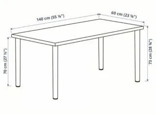 Mesa de IKEA o Escritorio de IKEA, color negro, grande y muy estable. Ideal como mesa de comedor, escritorio grande o mesa de trabajo. Las patas son desmontables y ajustables en altura, lo que permite adaptarla fácilmente. Muy práctica para transporte o mudanza. La mesa está en buen estado general, aunque tiene algunas marcas de uso (se ven en las fotos), solo estéticas y no afectan al uso. Medidas: 120 cm x 60 cm.