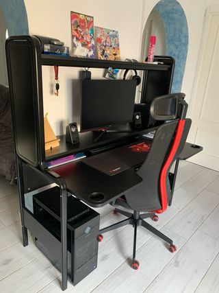Escritorio gaming modelo FREDDE de IKEA. - Estructura robusta de metal y plástico. - Valorado en 269€, y se vende a 200