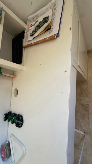 Conjunto de cama alta SMÅSTAD con escritorio integrado y cuatro cajones. Tiene 5 centímetros menos de ancho que la cama original (200 en vez de 205) - Estructura de madera - Acabado en blanco - Incluye escritorio con cuatro cajones.