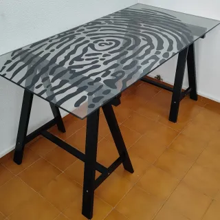Escritorio descatalogado - Vidrio templado - 2 Caballetes negros de madera Precio sin caballetes 40€