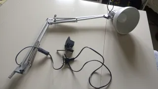 Lámpara de mesa para escritorio, ideal para cualquier espacio de trabajo o estudio. Se encuentra en perfecto estado, sin uso. - Diseño moderno y funcional. - Brazo articulado para ajustar la posición de la luz. - Base robusta para mayor estabilidad.