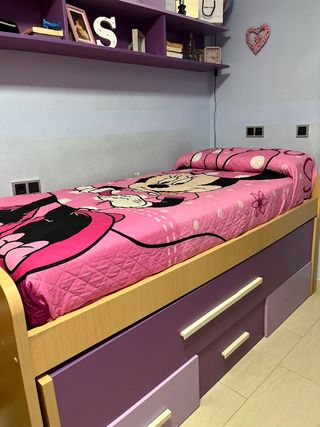 Se vende habitación infantil completa, ideal para niñas. - Cama individual con cajones. - Escritorio con silla. - Estanterías y baldas. - Decoración temática. -la habitación está nueva yo te la desarmo y te la monto aquí en la roda