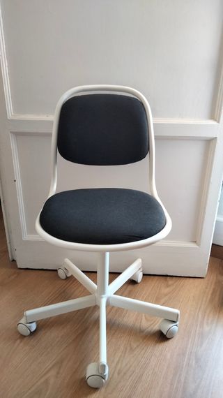 Silla de escritorio infantil de Ikea modelo Orfjall. - Asiento y respaldo acolchados. - Base con ruedas para fácil movilidad. - Diseño moderno y funcional.