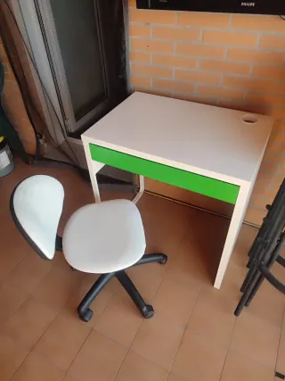 Conjunto de escritorio juvenil y silla de IKEA. - Diseño moderno y funcional. - Ideal para espacios de estudio.