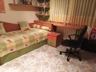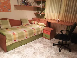 Se vende dormitorio infantil con dos camas abatibles y mesa escritorio. Junto a la ventana para colocar la mesa dispone de dos estanterías con cajon inferior. - Por el día la habitación queda recogida y por las noches funcional para dormir. - Funcionan perfectamente. - las camas activan el seguro al llegar al suelo. - las patas de la cama salen solas al bajar la cama. - el mueble dispone de correas en el interior de la cama que atan el colchón para que no se mueva. * Lo vendo por mudanza. Podria haber posibilidad de que la empresa de mudanzas que me lo retira a mi lo lleve hasta tu domicilio. Seria hablarlo con ellos.