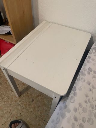 mesa infantil con espacios para hojas, pinturas, juguetes, ...