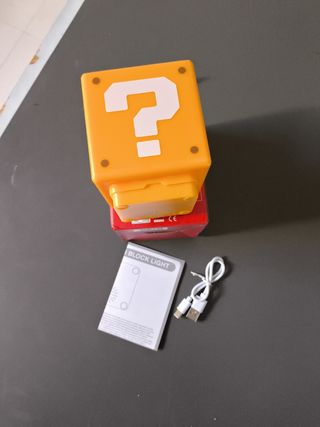 Lampara led nocturna niños Ladrillo con punto de interrogación super mario Bros con música 🎼 con cargador USB C Lampara led de escritorio