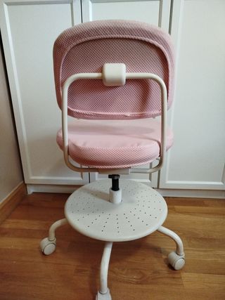 Silla infantil de ikea. 78 cm de alto. Tiene las ruedas cambiadas por unas especiales que no estropean el suelo. El asiento es como un plástico duro. No envío.