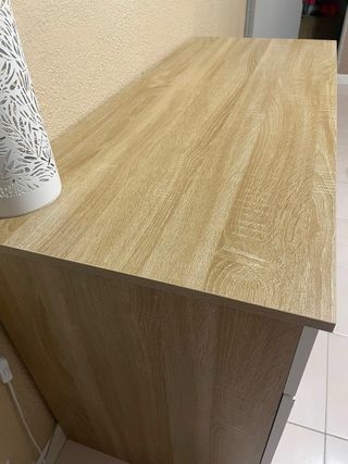 Cambiador de bebé de Ikea en color blanco. Ideal para la habitación infantil. - Diseño funcional y seguro. - Materiales de calidad. - 4 cajones, dos estantes. Medidas: Ancho 90 Fondo 80 Alto 102 Se puede usar tanto de cambiador como de escritorio infantil. Tiene algunas pegatinas que habrá que quitar, pero está en muy buen estado.