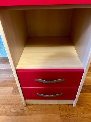Urge su retirada por esa razon su precio, vendo dormitorio infantil en excelente estado, casi sin uso. Ideal para crear un espacio acogedor y funcional. Compuesto por dos camas y tres cajones de gran capacidad, 2 camas, 2 estanterías ,escritorio con libreria y mesilla, entrego los dos colchones en muy buen estado, se encuentran montados, las medidas de mueble principal son 200 x 100 x 80 de alto, el escritorio 115x60x 225 de alto y la mesilla 53x41, recogida en Villaviciosa de odon, ayudaría a desmontar y cargar en el vehículo , tengo otro dormitorio en mi perfil, los dos por 400 euros