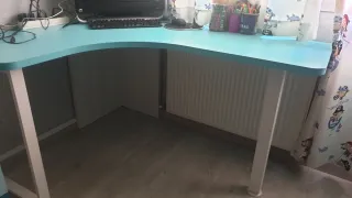 Escritorio infantil modelo FLISAT, este no se puede regular en altura porque he debido de tirar sin darme cuenta las patas externas con las tuercas naranjas. Muy amplio y cómodo. Se pueden colocar en la parte de abajo, cajas del Ikea como se ve en la foto.