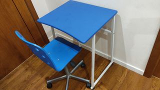 NUEVO PRECIO (Llévatelo con otra silla igual pero rosa, si quieres foto, pídemela: 2 sillas y 1 mesa por 30 euros - CHOLLO) Conjunto escritorio infantil: mesa fija y silla regulable en altura con ruedas. Medidas en las imágenes. Usados, pero en perfecto estado, una ganga.