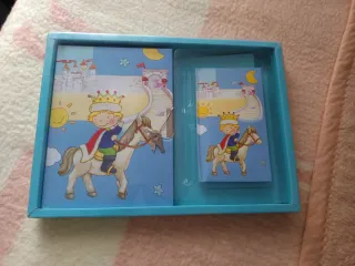 Set de papelería con un diseño infantil de un príncipe, en su caja. IMPORTANTE: NO ENVÍO POR GLS. - Incluye diario y agenda telefónica. - Diseño con castillo, sol y luna.