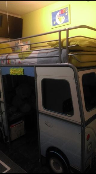 Cama autobús, tiene en la parte baja escritorio , banco con huecos para guardar cosas , muy poco uso apenas unos meses , su precio en ToysRUs fue de 850,00 euros. Se vende como se compró SIN COLCHON. Se vende por 200 EUROS NO NEGOCIABLES Y EN EFECTIVO O BIZUM