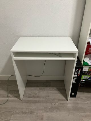 Se vende escritorio infantil modelo FLISAT de IKEA. Tiene tres alturas diferentes, un tablero que se puede inclinar y un soporte para el rollo de papel MÅLA. Tengo dos, vendo cada uno por 30€, los dos están en buen estado, aunque tiene algunos picotazos en la superficie de la mesa (se ve en las fotos). Ancho: 92 cm Fondo: 67 cm altura mínima: 53 cm altura máxima: 72 cm