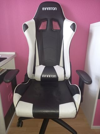 Se vende silla gamer mar a infiniton, prácticamente nueva.Tamaño grande.Color negro y blanco.Respaldo reclinado.Regulable en altura.