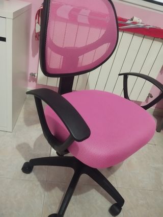 Silla de escritorio infantil en color rosa, ideal para niñas. Es cómoda y fácil de limpiar. - Estructura de plástico resistente. - Asiento y respaldo de malla transpirable. - Reposabrazos incluidos. - Color rosa. Nueva sin estrenar