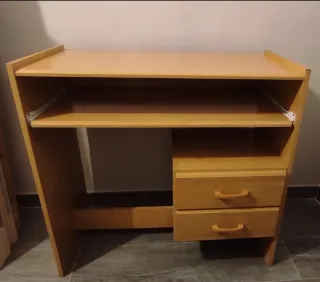 Mesa de estudio funcional con espacio para ordenador, bandeja corredera y dos cajones . Ideal para tu zona de trabajo o estudio. - Diseño compacto. - Cajones para almacenamiento. - Superficie para trabajar comodo/a. MEDIDAS Largo - 83,5 cm Fondo - 40 cm Alto - 80 cm Transporte a cargo del comprador. Hay ascensor. Se puede ver sin compromiso. Mas articulos en mi perfil! habitación, estudio, parcela, pueblo, ordenador, dormitorio, muebles, oferta, piso, televisión, TV, como nuevo, mesita, ordenador, negociable, ikea, urge, sofa, decoración, juvenil, alquiler, casa, madera, regalos, navidad, barato, buen estado.