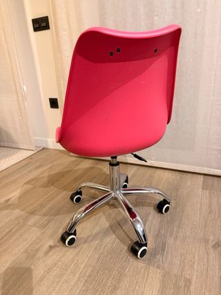 Silla de escritorio infantil en color rosa. Comprada en Maison du Monde y valorada en 129e. Muy cómoda y en perfecto estado, telescópica, dimensiones 50x 80 o 92 cm en su máxima extension. Diseño moderno y giratorio la hace ideal para cualquier habitación.Marcas típicas de uso infantil pero en un espectacular estado. - Base metálica cromada con ruedas. - Asiento y respaldo ergonómicos. - Altura ajustable.