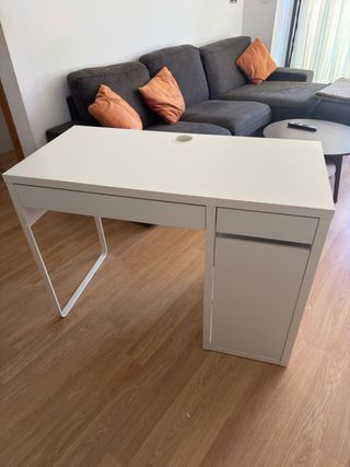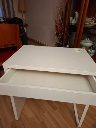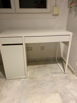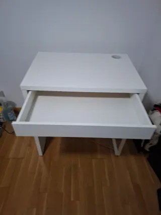 Escritorio MICKE de Ikea en color blanco. Sus dimensiones son 73x50 cm. - Diseño moderno y funcional. - Cajón integrado para almacenamiento. - Orificio para cables en la superficie. En buen estado. Tiene menos de un año. Se vende por mudanza. No envío, solo recogida. Gracias!
