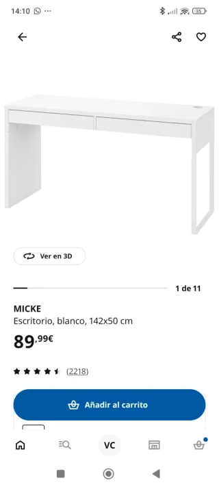 Escritorio Micke 142x50cm Ikea