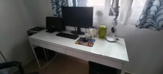 Escritorio modelo Micke de Ikea en color blanco. Se encuentra en perfecto estado. - Diseño moderno y funcional. - Amplia superficie de trabajo. - Cajones integrados para almacenamiento. Para recoger en Santiago. No se envía.