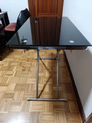 Mesa plegable cristal negro y metal