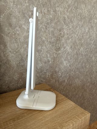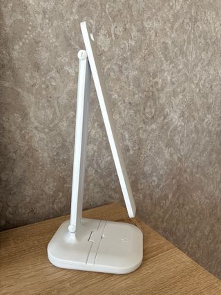 Lámpara de escritorio moderna y plegable. Su diseño compacto la hace ideal para llevarla a cualquier lugar. Luz LED de 3 colores. Luz blanca, luz cálida y mixta. Con diferentes intensidades. Tiene soporte para móviles. Se carga con puerto USB. Incluye el el cable. Funciona perfectamente. La vendemos por falta de uso.