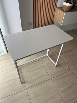Mesa de escritorio plegable, ideal para espacios reducidos o para tener un área de trabajo extra. Su diseño permite guardarla fácilmente cuando no se utiliza. - Estructura metálica. - Superficie lisa y fácil de limpiar. Esta en excelente estado, se vende por mudanza pero con poco uso.