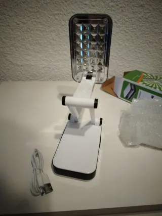Lámpara de escritorio lupela con diseño plegable y brazo articulado. Perfecta para iluminar tu espacio de trabajo o lectura. Creo que el cable no es suyo Pero funciona perfecta - Brazo articulado para ajustar la posición. - Base redonda y estable.