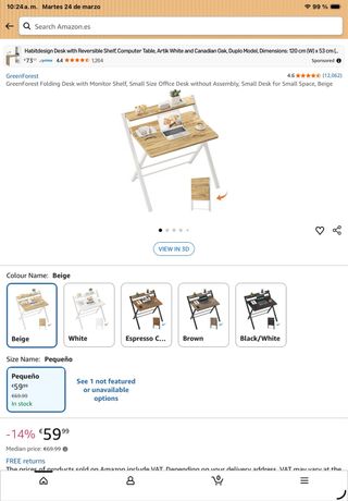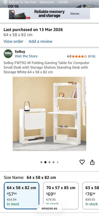New price 58€. Sell for 35€ Escritorio plegable con baldas para ordenador. Diseño moderno y funcional. - Medidas: 64 x 58 x 82 cm. - Acabado en blanco. - Incluye baldas para almacenamiento. Must be collected in Alfaz