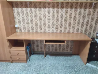 Set completo habitación - Mesita de noche con cajonera (2 cajones) - Escritorio largo con cajonera y mesita extraíble para teclado - Mueble cama plegable 90×180 - Colchón incluido o venta a parte (50€) - Precio negociable